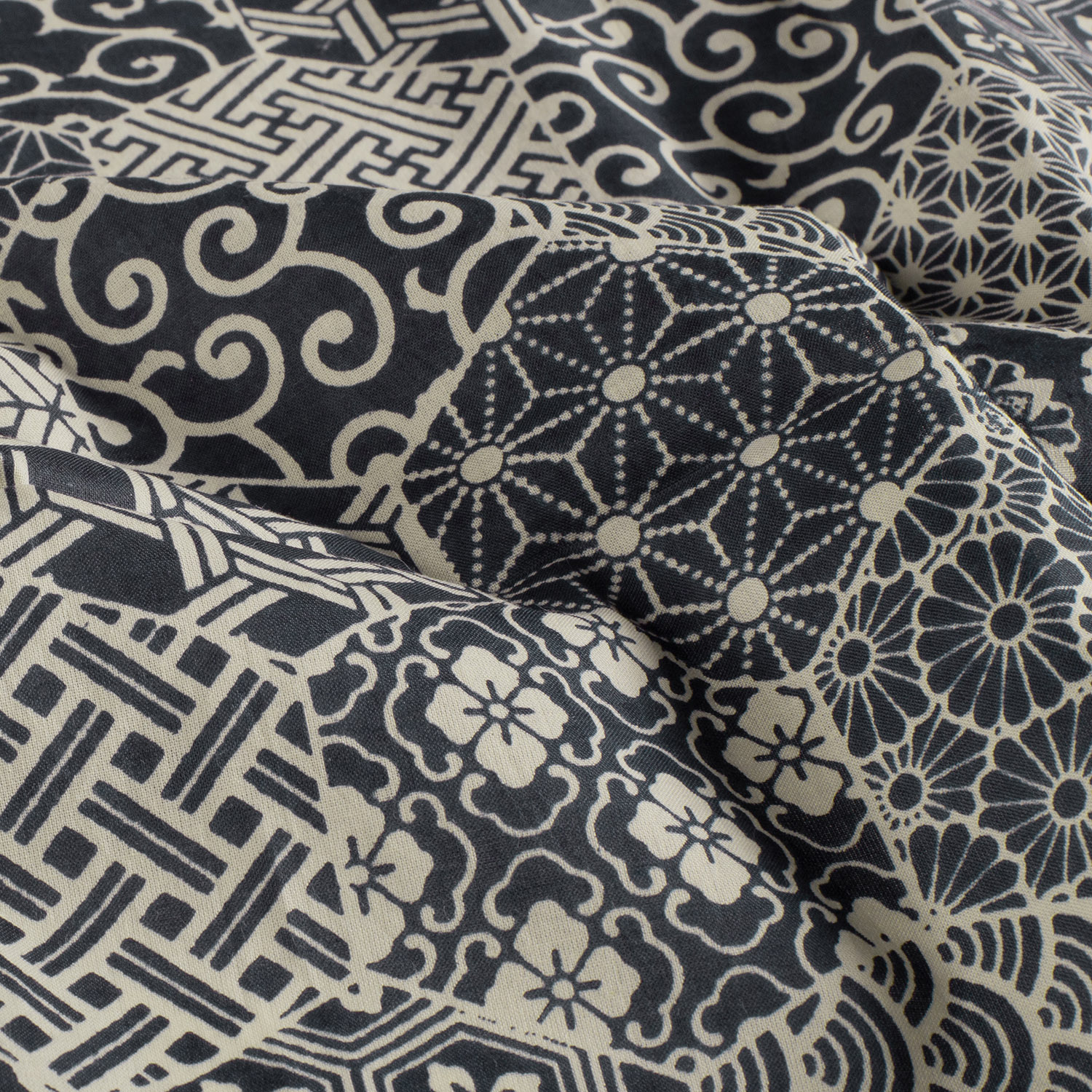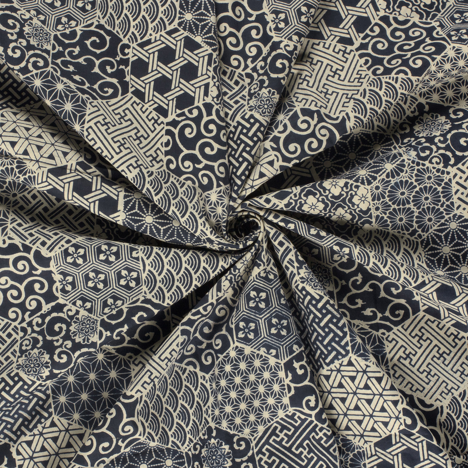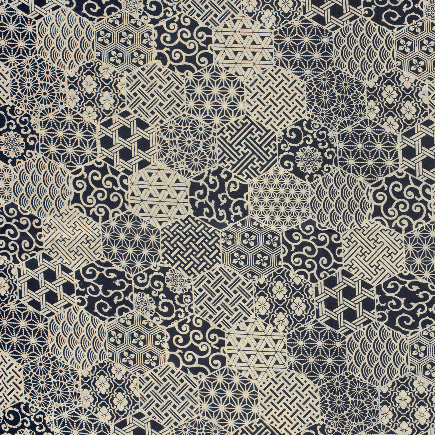 Voile Coton - Motifs Hexagones Bleu Indigo