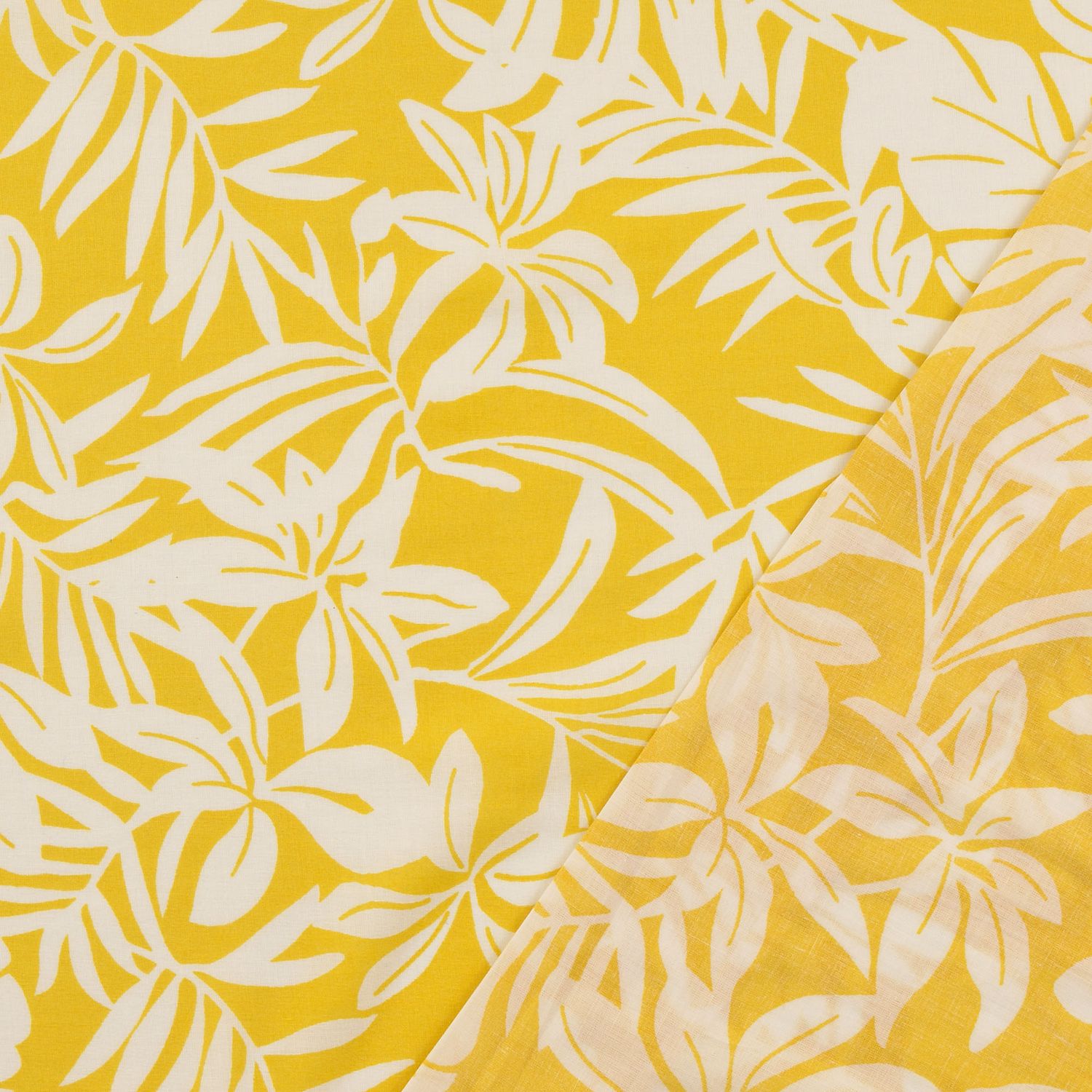 Voile de coton - Feuilles tropicales jaune