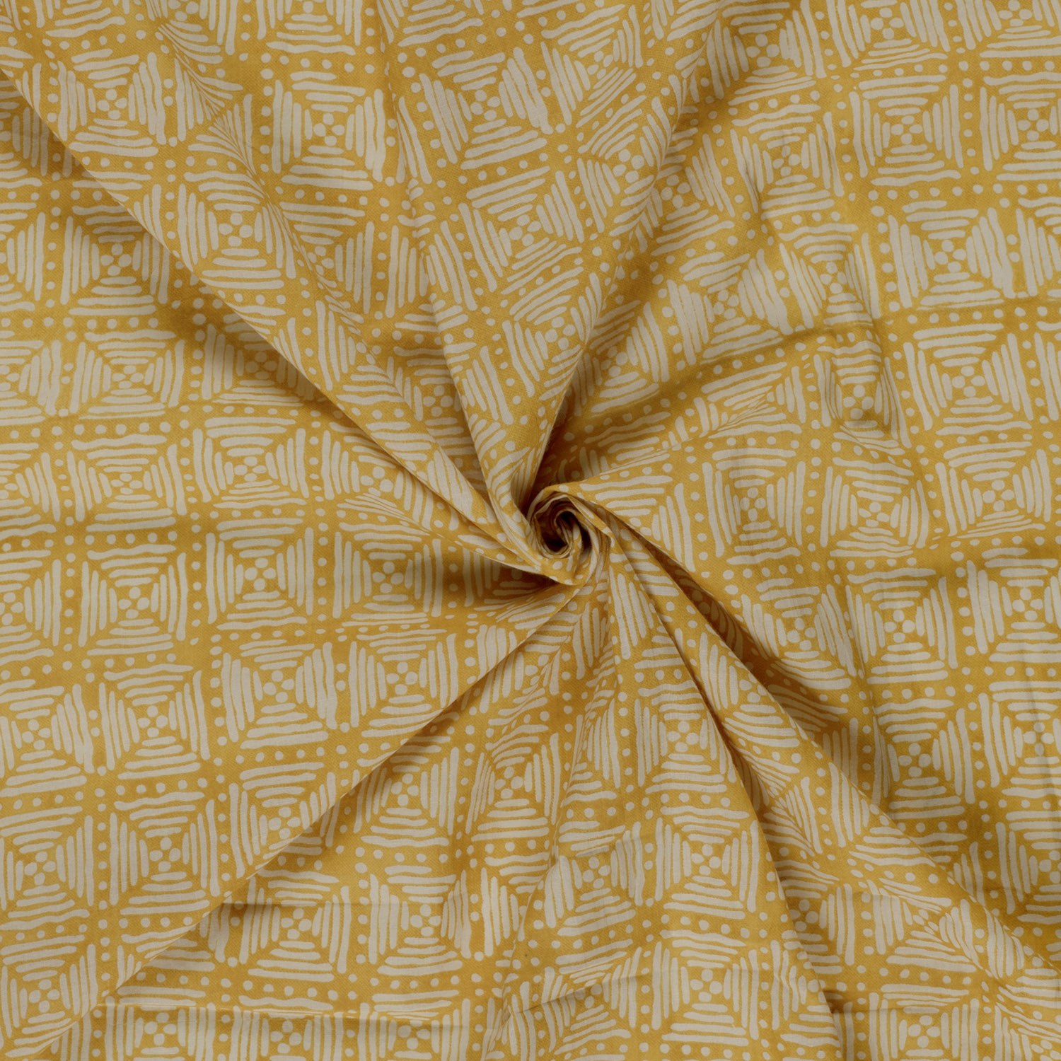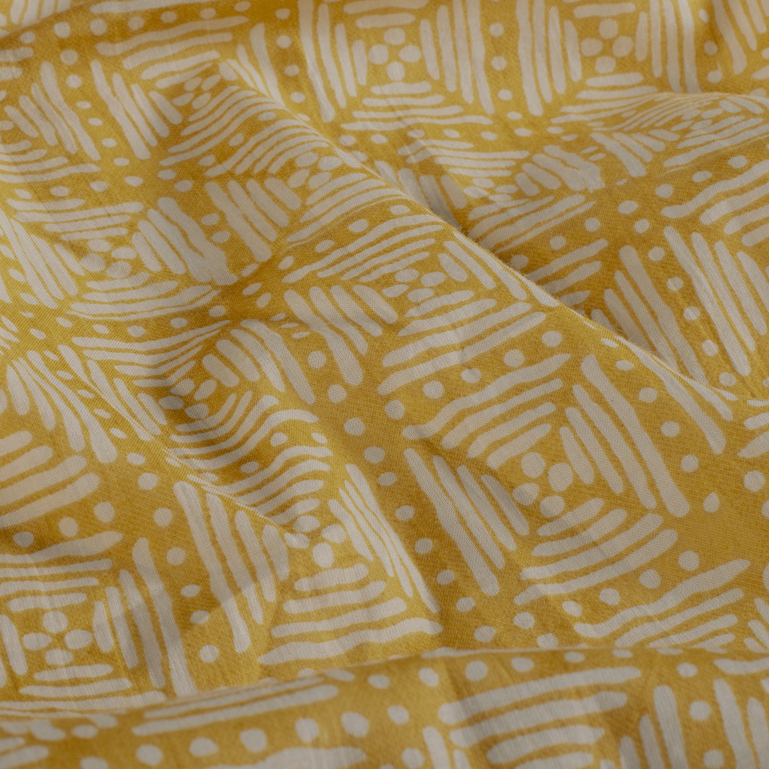 Voile de coton - Pois géométriques curry