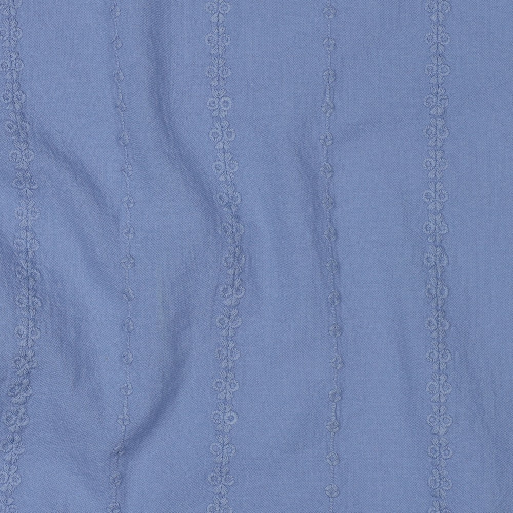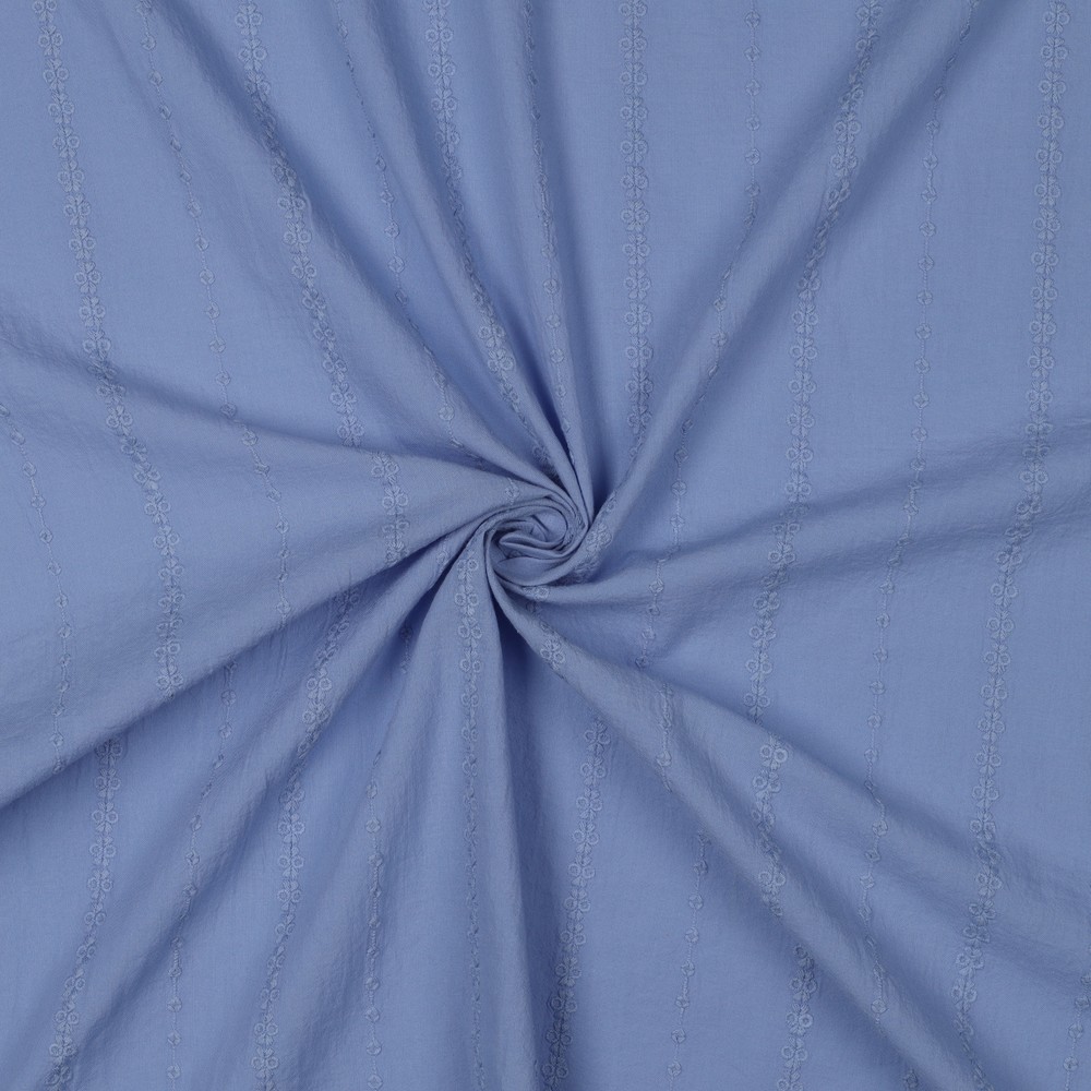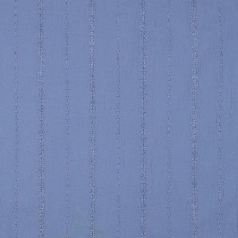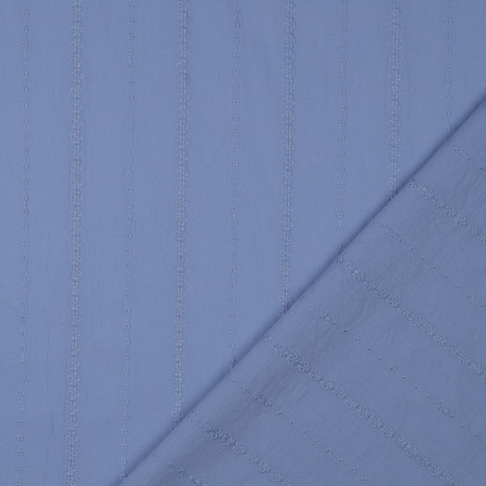 Voile de coton - Rayures brodées Bleu jean clair